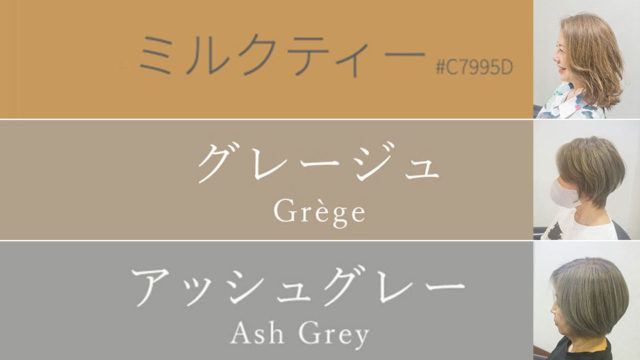 【グレイヘアと白髪ぼかし】 白髪ぼかしカラー人気の髪色と似合う色を見つける3つのポイント! 白髪ぼかしで人気の髪色は、アッシュグレー、グレージュ、ミルクティーなど明るめのベージュ系です。白髪との馴染みも良く、40代・50代にも人気の白髪ぼかしカラーを紹介します。 2026.03.23 【グレイヘアと白髪ぼかし】